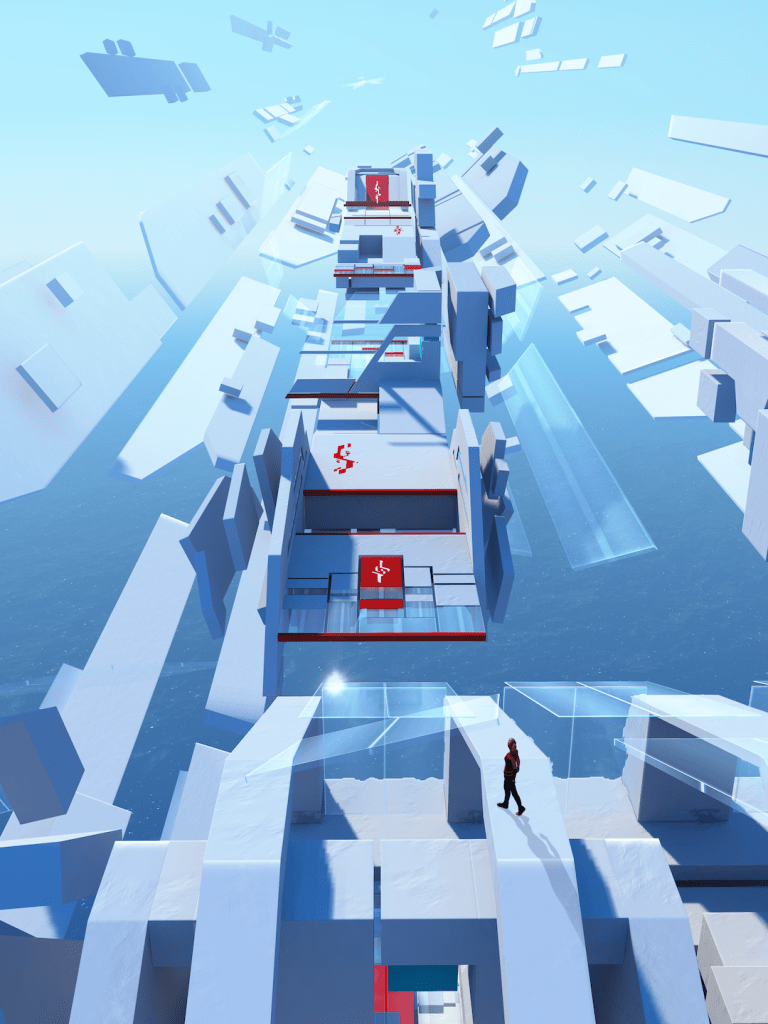 In this review, I’ll be reviewing the speedgame of Mirror’s Edge, not the “casual” or “canonical” or “intended” version of the game. I’ll be doing this largely because I don’t think the intended game of Mirror’s Edge is particularly interesting or fun. I think that what makes games interesting or fun is when they have interesting choices connected to differing skill challenges, which give better or worse results with regards to your skillful input.