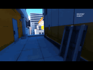 When I first began racing Mirror’s Edge with a friend, I’d spend most of my time in runs not knowing where to go next, until I practiced enough in my off time to remember the route. Now that I’ve played the game as much as I have, I can identify the location of most any screenshot I’m seen, and I can play through and explore levels in my head, including much of the out of bounds areas. While Mirror’s Edge is beautiful to explore, the intended experience doesn’t really offer interesting choices as to how to complete it, and it doesn’t have much of an outlet for developing skill with the game. Many sections of the intended game place you in closed room encounters with cops that are difficult to escape without neutralizing all the enemies, as you frequently need to climb something slowly, or slowly open a door, giving them a big opportunity to gun you down in an instant.