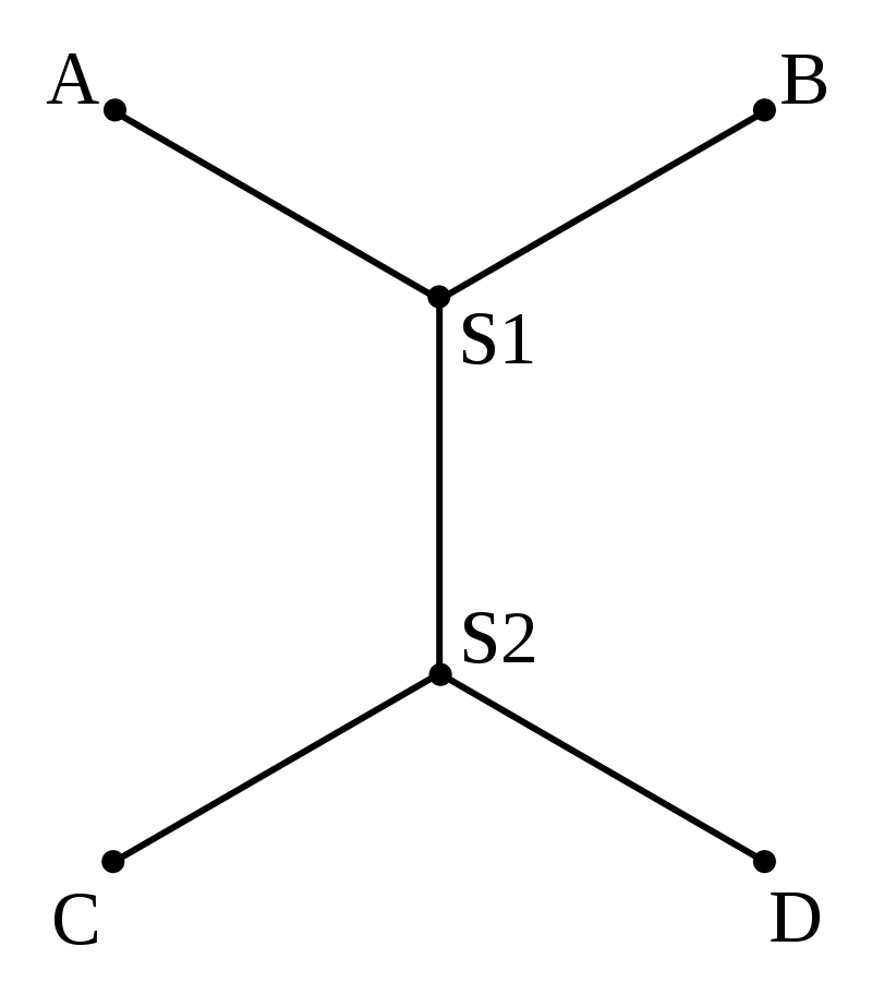 The Steiner point marked as S, the point with the minimum distance between multiple points, sits between all the other points of interest, and minimizes travel time between them. In real life we see college common areas designed like this, because they simplify navigation, but in an exploration game, we typically want navigation to be more complex.