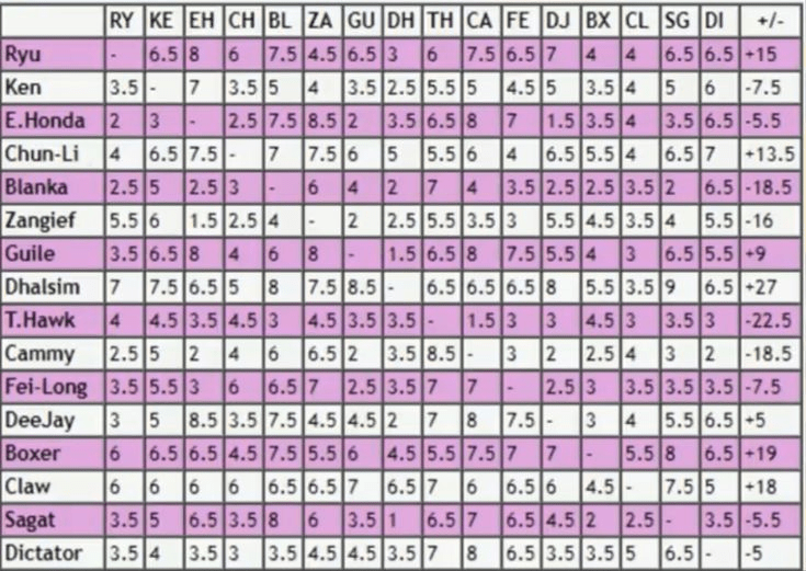 So this also means there are 2 types of imbalance: Stronger & weaker characters existing in a hierarchy; And individual matchups being heavily lopsided.