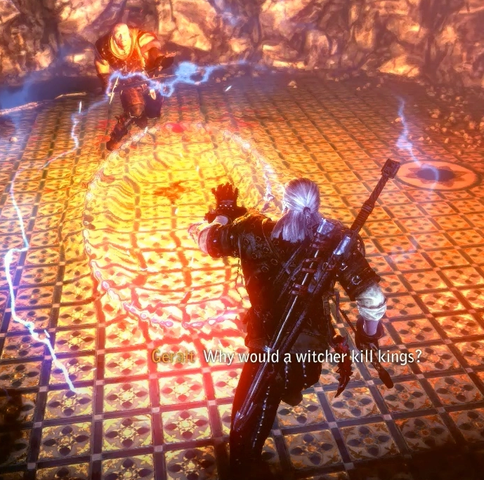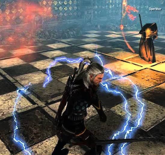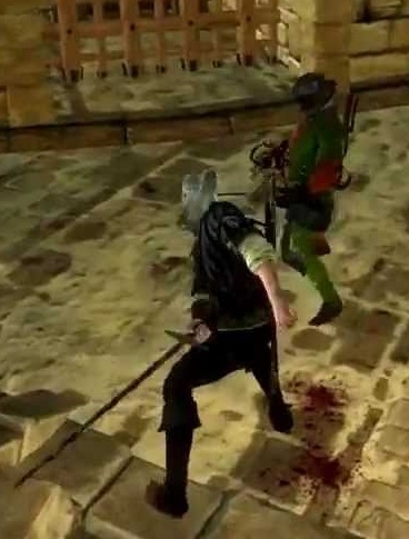 The quality of visual feedback in Witcher 2 is miserable. There is no hitstop on attacks, frequently blood would not fly on successful attacks, and hitstun will not play, these two are especially noticeable during your roll, where the only sign you took damage sometimes is that your health bar lowered. There is also a glitch where you can roll, take damage, and finish your roll then even run a little ways before realizing you have 0 health and are dead.