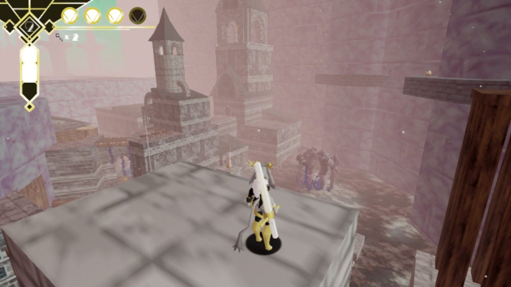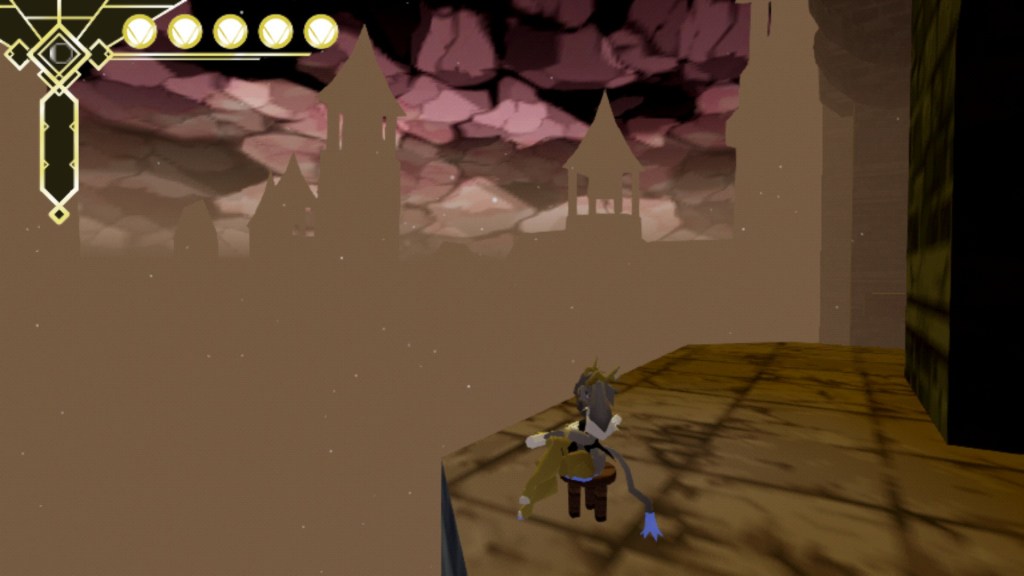 The game has a low poly look, reminiscent of the Playstation and N64. While the game runs at 60fps, the character is animated at a much lower framerate for stylistic purposes. I think the poses are spectacular and stand out well. The animations help the character feel really fluid as she flips and kicks and dives. However, the low poly look means that many places can be rather indistinct. While the architecture is fairly good at creating unique and memorable rooms, it can be difficult to tell whether some dead ends are places I collected something already, or if there’s a secret I missed. While I know Lordran and Mirror’s Edge like the back of my hand, I had a lot of difficulty piecing together how the world of Pseudoregalia was fit together, and mostly ended up wandering around until I ended up where I wanted to be.