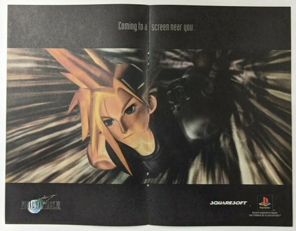 The story of the times was that the nerds had grown up, gotten corporate programming jobs, and taken over the world using the internet, iPhones, and personal computers. We saw games go from 8-bit pixels to intricate 3d renderings in the space of 2 short decades. Games during that time period began to compare themselves to films as they were able to present detailed pre-rendered, or in-engine cinematics. Final Fantasy VII had this print ad: