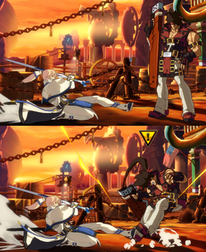 Blazblue, Under Night, and Dragon Ball FighterZ chose to give their anti-air normal attacks the “Head” invincibility property, making them immune to airborne melee attacks. This means they will always cleanly and consistently beat airborne attacks, making them a harder counter, but not allowing them to beat poking moves on the ground.