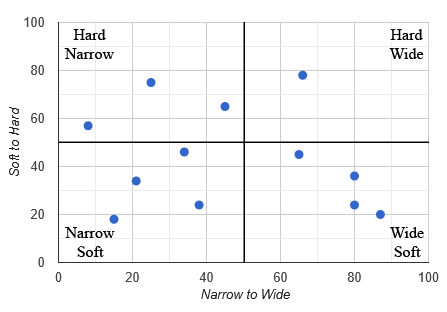 By dividing counterplay across these two axes, we can see the relative strengths and weaknesses of different moves and intentionally alter the counterplay of moves relative to our needs.