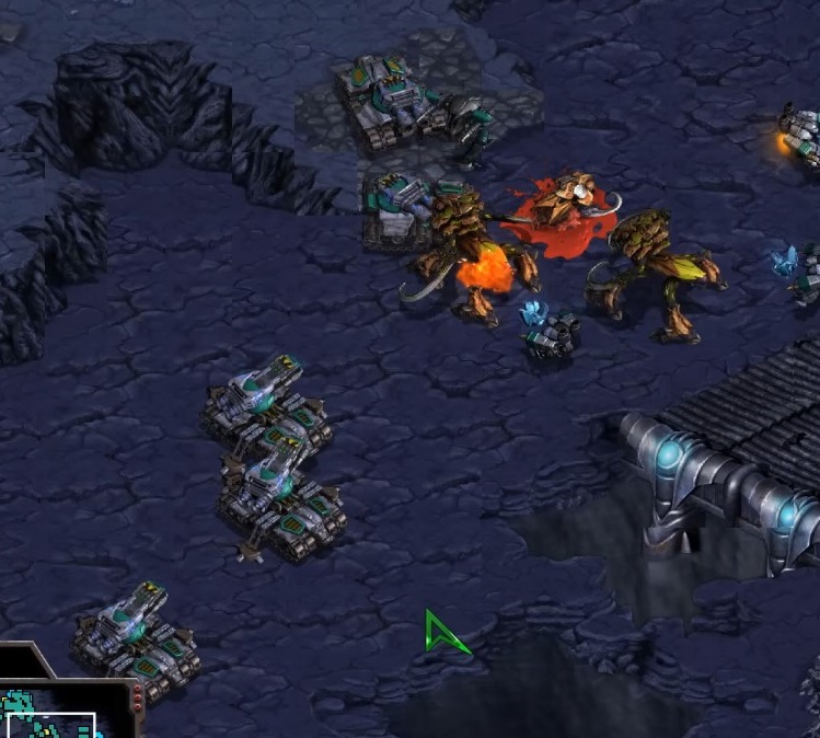Each unit is either an air unit or a ground unit, and each unit’s weapons can hit either ground, air, or both. If a unit is attacked by another that is in the space it can’t shoot at, it’s a sitting duck. For example, Siege Tanks can’t hit air units, so they get torn apart by Mutalisks. And Corsairs can’t attack ground units, so they can be torn apart by Hydralisks.