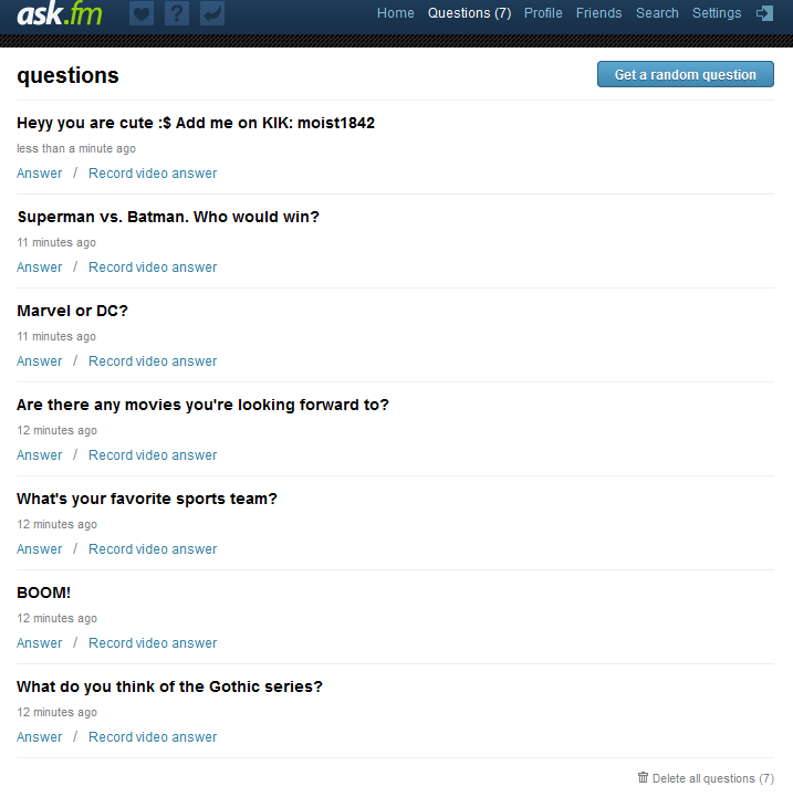 I spent 2-3 years unemployed out of college, before ultimately settling on a minimum wage job that slowly burned me out. Every time I clocked in, I’d read 2-3 askfm questions and think about them through my whole shift, then type them in as soon as I got off.
