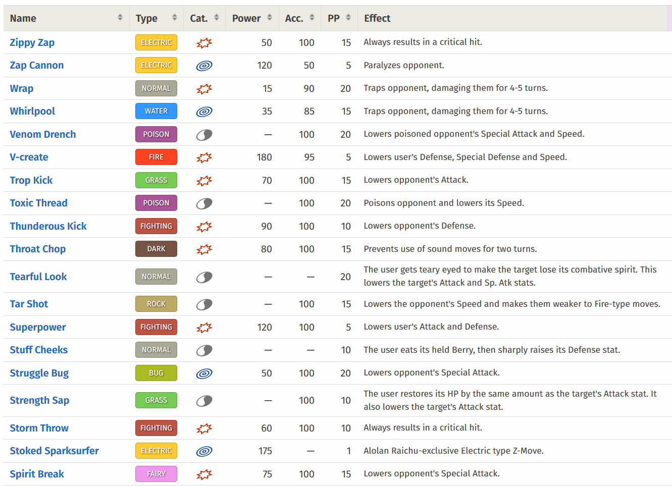 You can see orthogonality in the design of Pokemon moves. Your starting moves early in the game are fairly simple and linear, like tackle, vine whip, peck, and water gun. Later moves tend to have secondary effects, like inflicting status effects, buffing or debuffing Pokemon, always going first, never missing, dealing double damage if you’ve been hit, and so on. They also have a unique type, power, accuracy, and PP value. These help give every move a unique role, making them orthogonal to one another. Because different Pokemon have different combinations of types, abilities, and move pools, this helps make each Pokemon species unique and orthogonal to one another.
