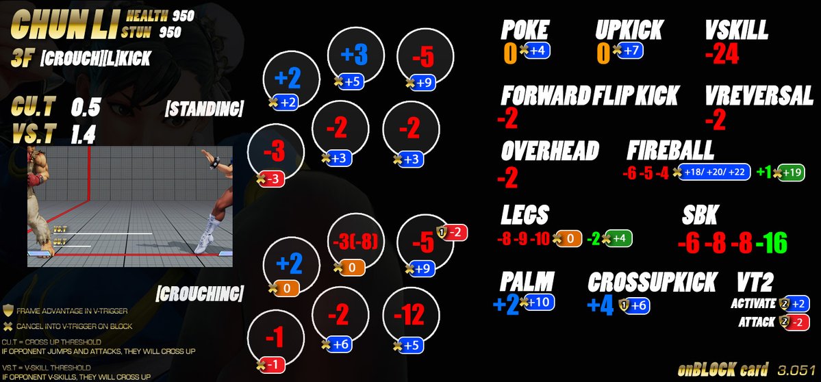 Rather than that, you want to identify your character’s fastest and slowest attacks (which have the lowest startup frames, and which have the highest), so you know which moves to use when you need to poke out fast. Then you want to divide all of your moves into 3 categories: Plus, minus, and unsafe. After it is blocked: Is it your turn, their turn, or do they get to punish you? You don’t need to know the exact numbers, just the general category.